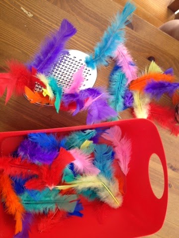 7. Insérer des plumes dans une râpe (la partie avec les plus petits trous).