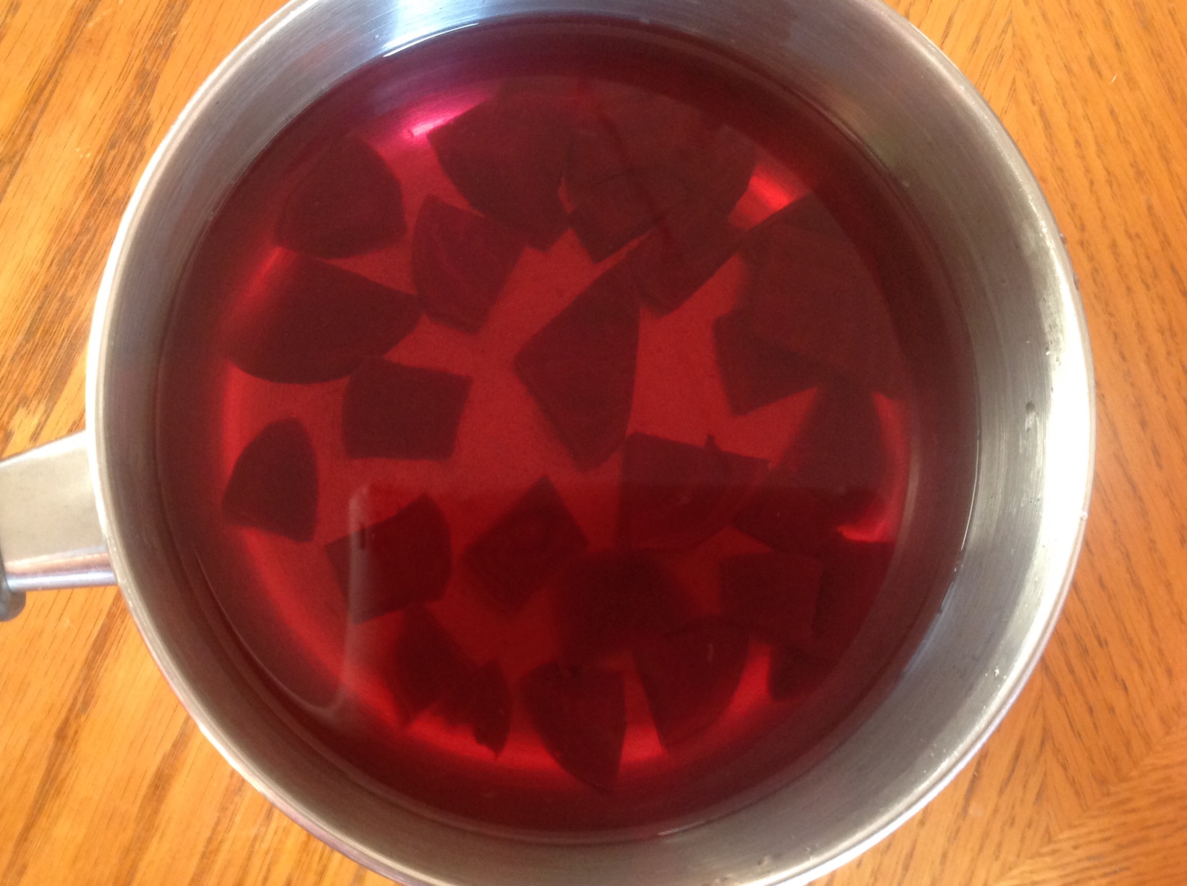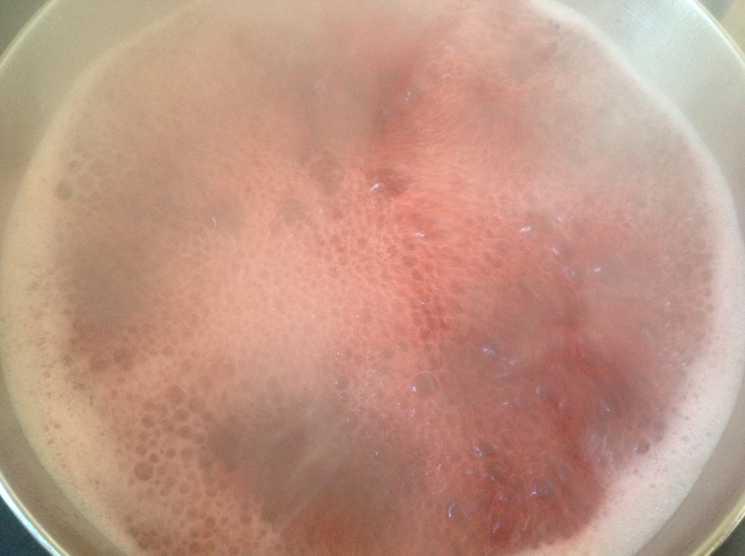 Laisser bouillir pendant 20 minutes ou jusqu’à ce que l’eau se soit évaporée pour laisser une tasse de liquide coloré.